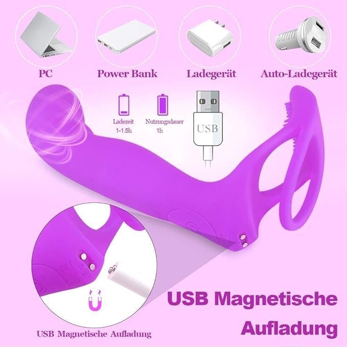• Type: Dual stimulation vibrator with penis ring & curved anal plug